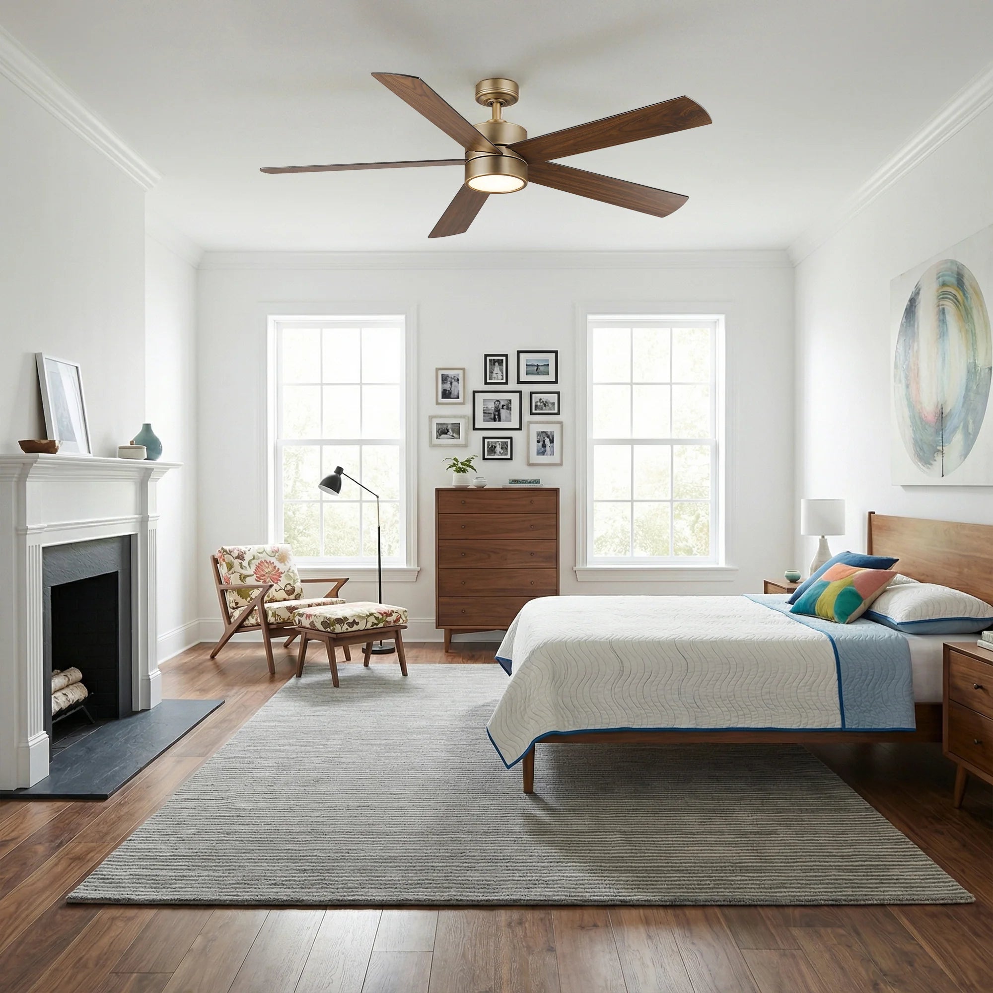 Bigger doesn't have to mean industrial-looking. IPLUS offers large wood ceiling fans that bring warmth and texture to oversized rooms. You'll find wood-toned blades that highlight grain and character, hand-finished surfaces, and design details that feel crafted instead of mass-produced. The natural style works beautifully with farmhouse beams, traditional wood furniture, organic modern décor, and neutral palettes. In spaces that can feel a little echo-y or "too open," natural materials like wood add visual softness, making the room feel more grounded and welcoming.