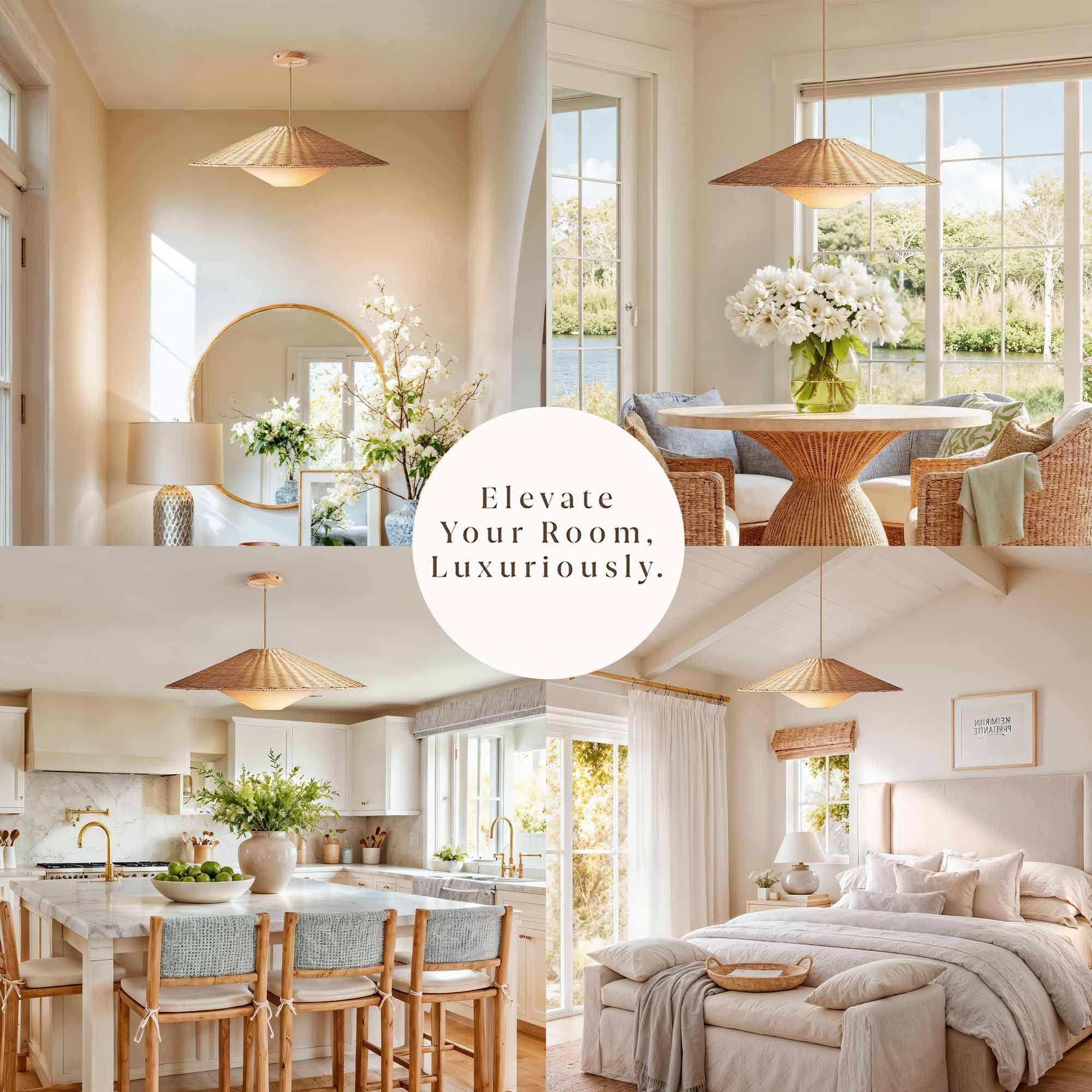 Bring a touch of nature and warmth into your home with IPLUS Rattan Lighting. Crafted from the versatile, natural material rattan, our collection of rattan light fixtures combines traditional and farmhouse styles to create a welcoming atmosphere. From statement chandeliers to subtle recessed lights and charming wall sconces, each piece features a handcrafted, minimalist design that complements rustic, nature-inspired interiors. The woven textures of rattan allow light to filter softly, creating a cozy, ambient glow in any room.