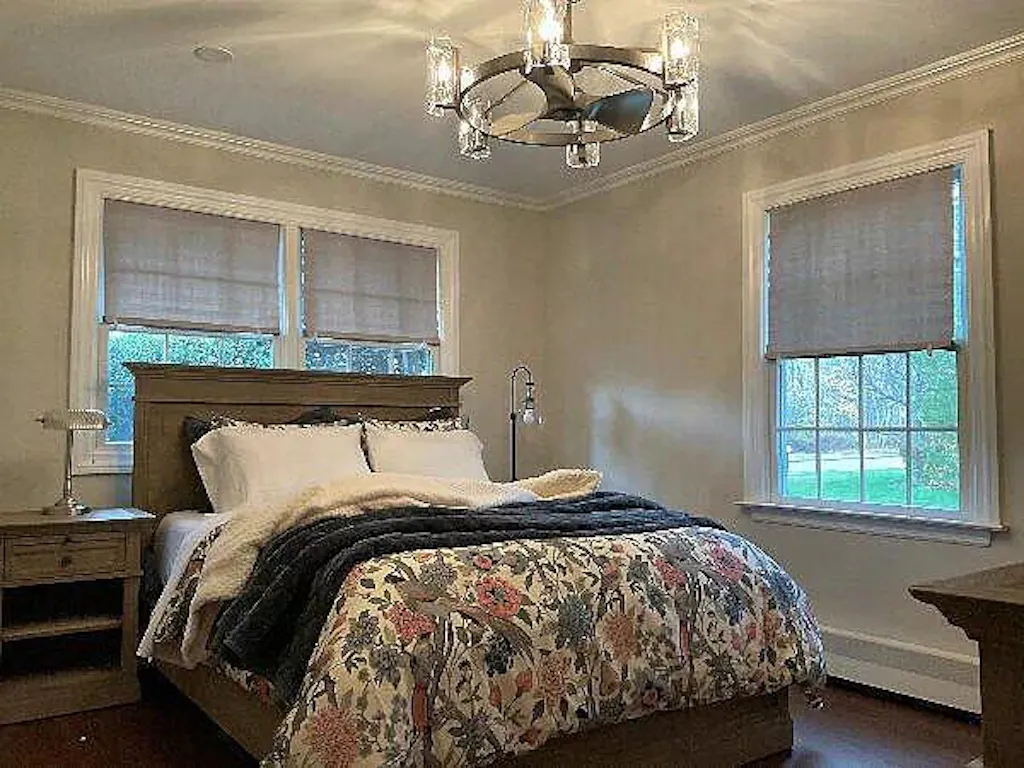 Elevate your space with this 34-inch Fandelier ceiling fan, combining elegant chandelier lighting with powerful, quiet airflow.
